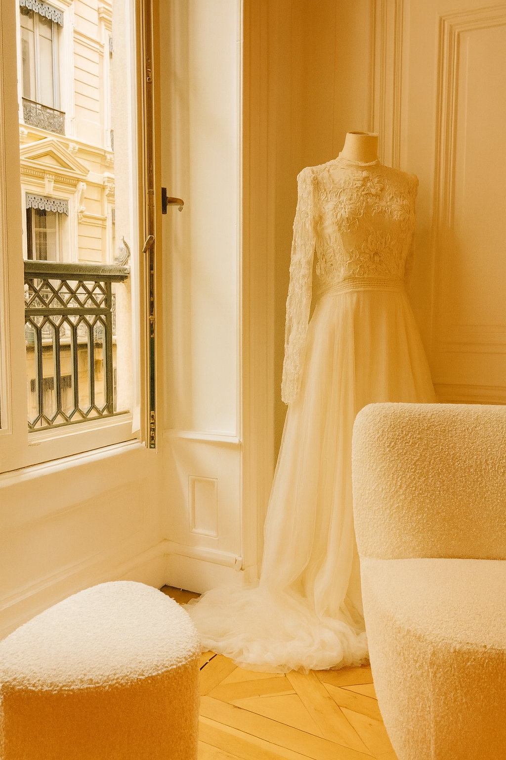 Un lieu pensé comme une parenthèse hors du temps, où chaque essayage devient une expérience poétique et sur mesure.